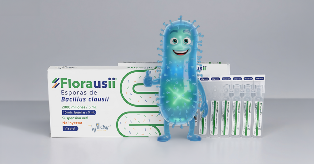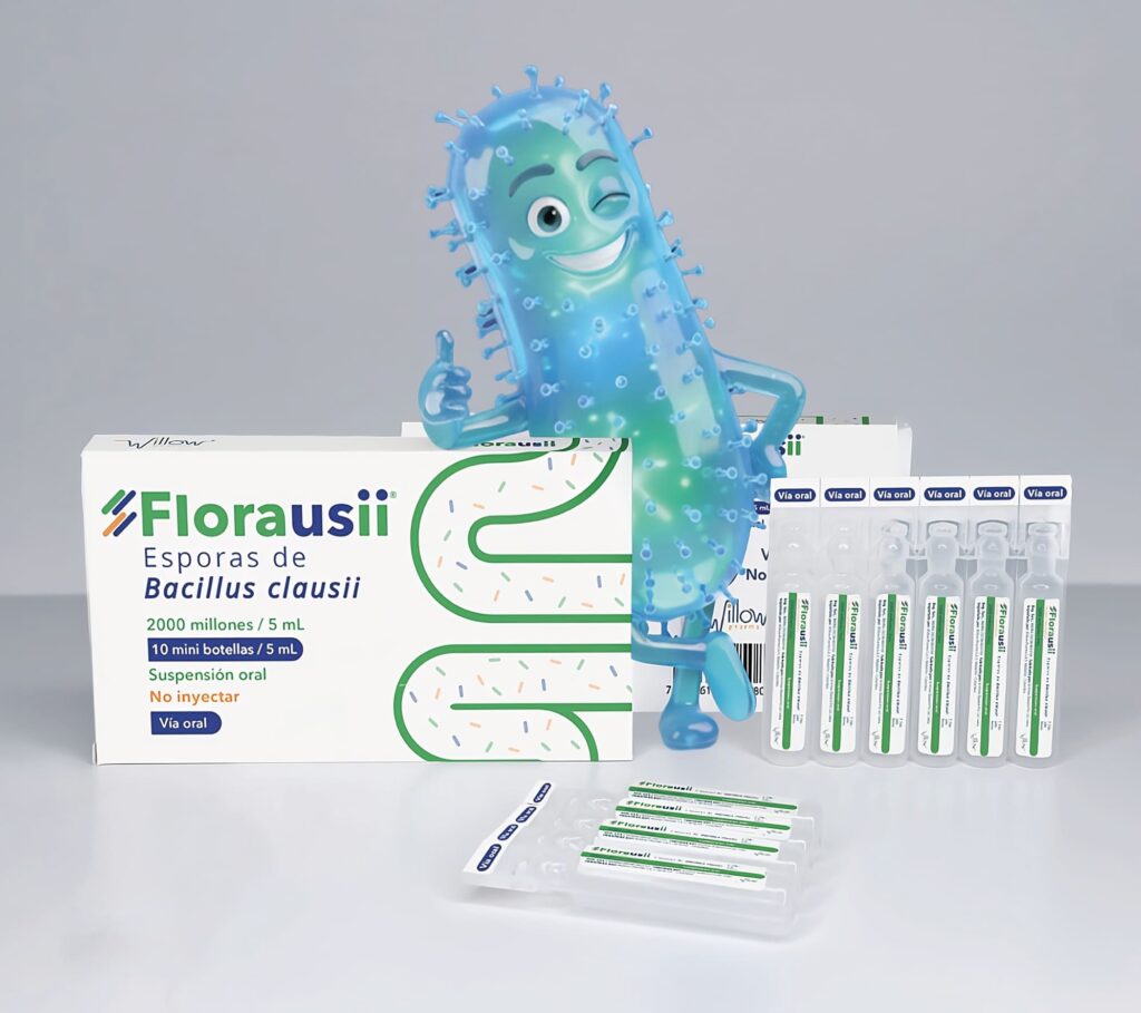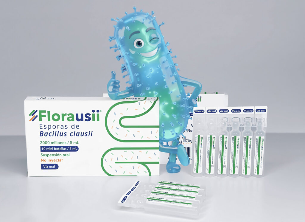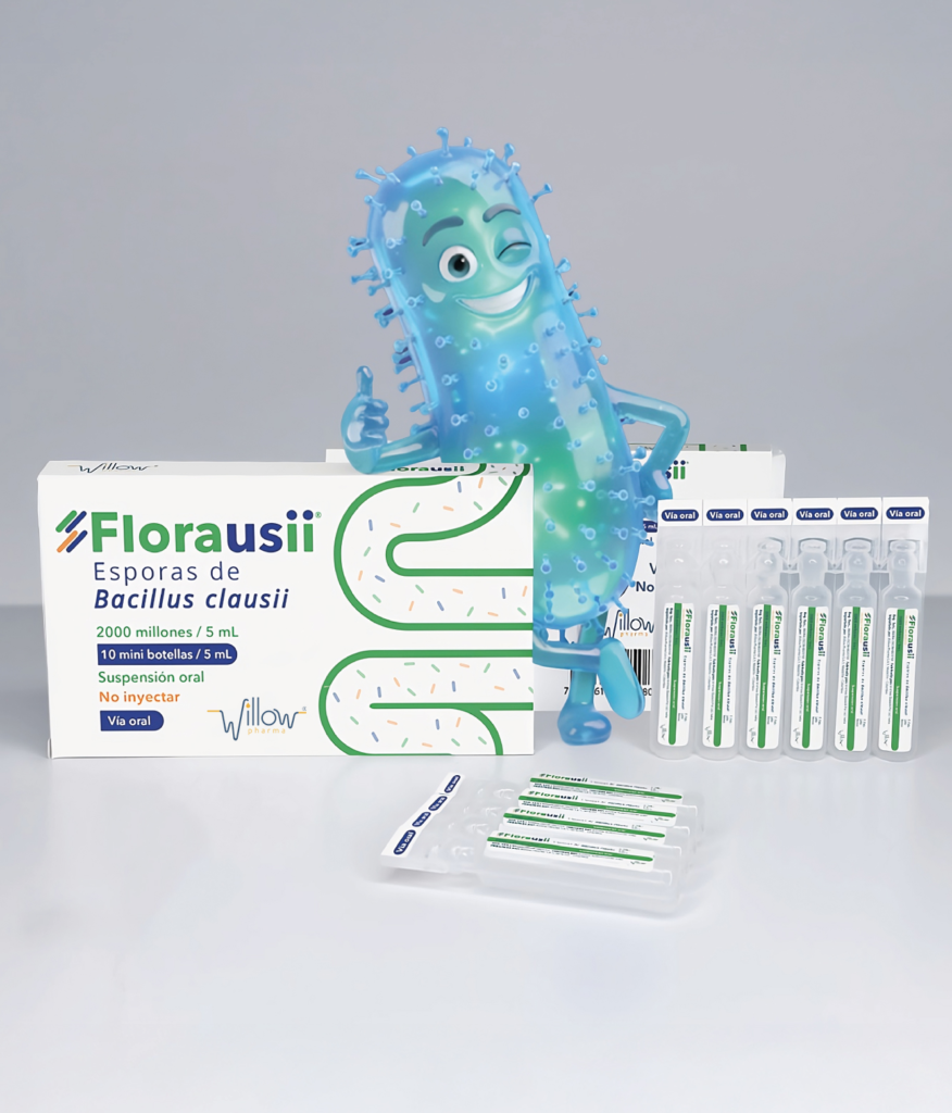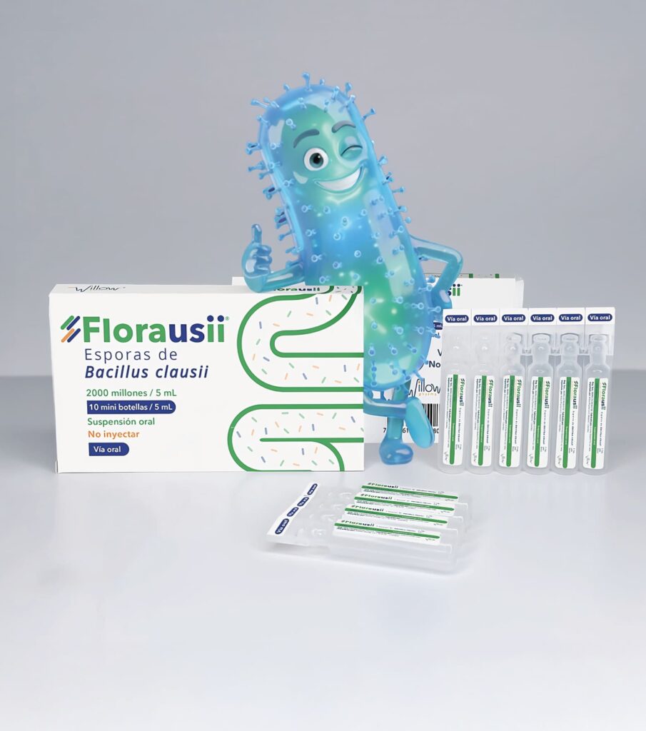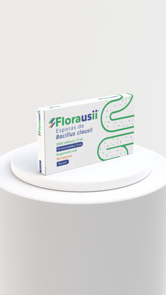 Florausii® es una suspensión oral de esporas de Bacillus clausii, una bacteria que forma parte de la microbiota intestinal normal y que en condiciones fisiológicas, no posee capacidad para causar infecciones en el ser humano. Es resistente al ácido gástrico y a la bilis, por lo que sobrevive al tránsito por el tracto gastrointestinal. Una vez en el intestino, restaura la flora intestinal deteriorada contribuyendo a la salud gastrointestinal.